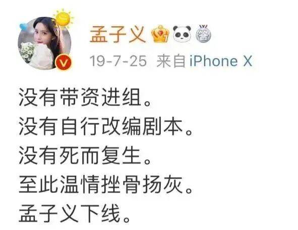 气得孟子义从业生涯头一回怒挂黑评,强调了好几遍她真没加戏不说,还把《陈情令》从自己的微博简介里删掉了,直到今天这条回应都挂在孟姐的微博置顶。