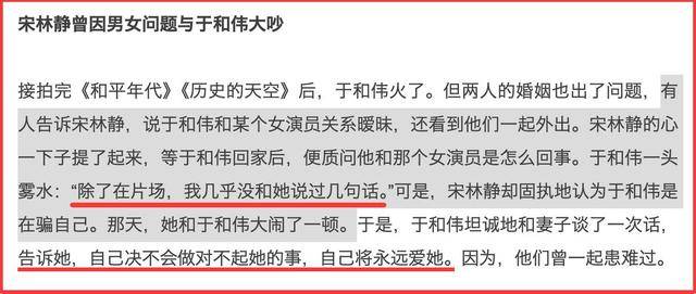 于和伟常年在外拍戏,他妈年纪大了,都是宋林静在身边伺候,孩子出生后,也是她又当妈又当爹,从不让于和伟分心。