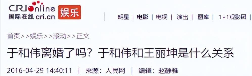 人民网:于和伟离婚了吗?于和伟和王丽坤是什么关系2016-04-29 14:40:11