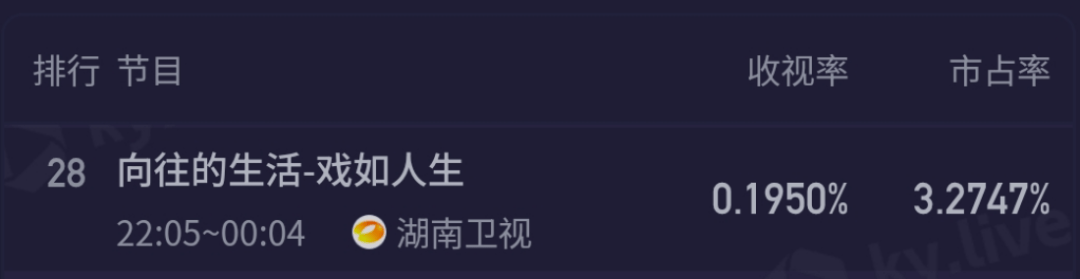 目前《向往的生活》最新直播收视仅剩0.195%。