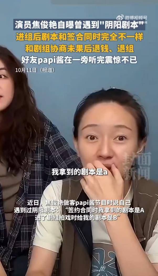 原创 焦俊艳自曝遇“阴阳剧本”,协商未果后退钱、退组