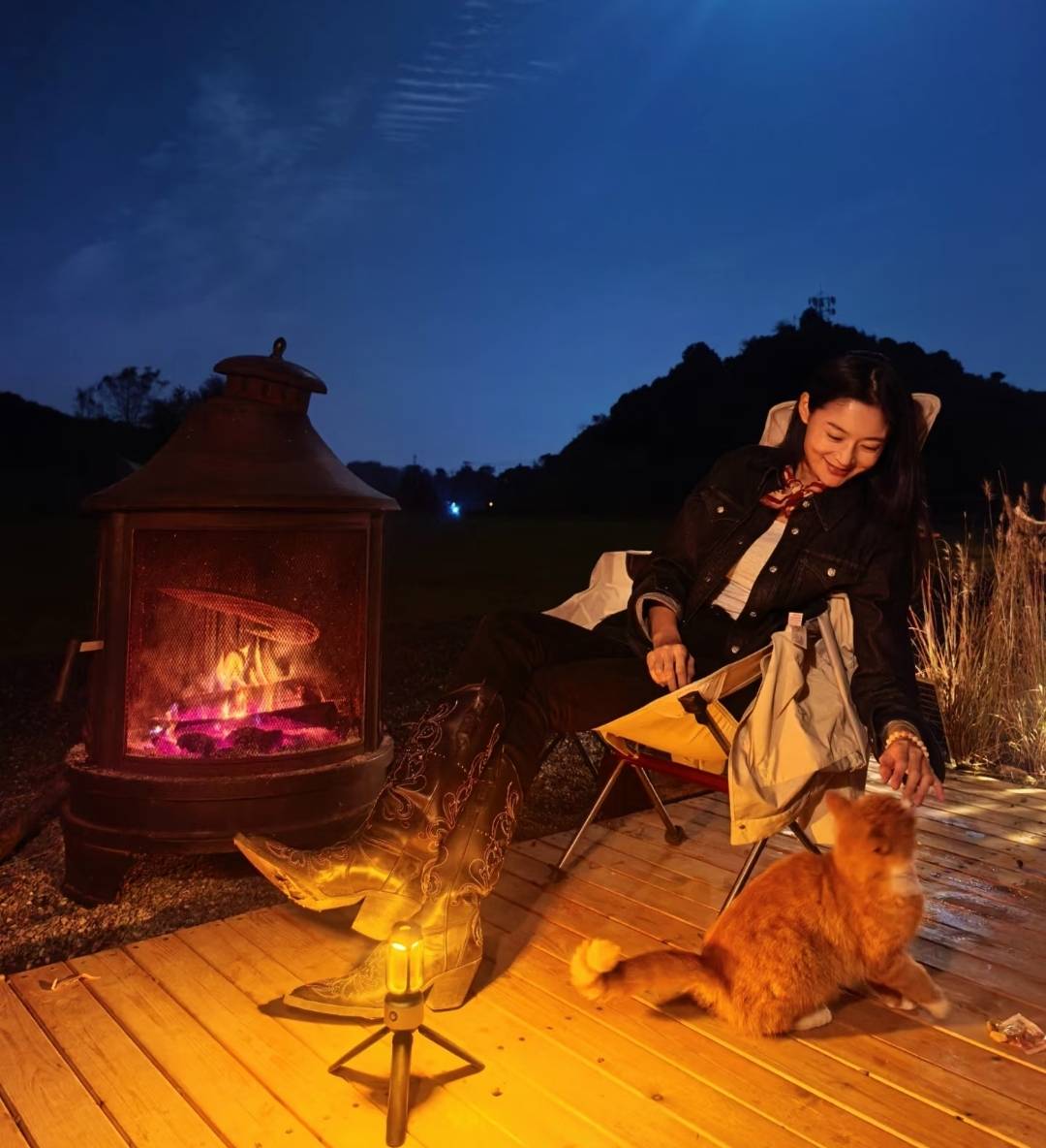 10月6日中秋节,王媛可晒出一组照片,她带着一家人在山上露营过中秋,夜晚坐一起看星星看月亮,身边还放着一个火炉,一边逗猫,一边赏月,也算是度过了一个非常特别且舒服的中秋节。