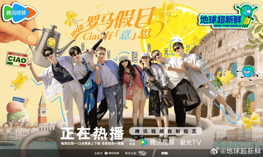腾讯视频综艺成为先行者:2023年腾讯视频推出《现在就出发》,通过人与大自然的深度连接去感受轻松快乐,疗愈生活。2025年,同一团队打造的《地球超新鲜》亮相,聚焦个体与世界的连接,海外旅行也意味着嘉宾们要走出去,融入到更多人中。一脉相承的是,两档节目都主张不依靠强压下的冲突制造看点,而是在轻松愉悦的环境里去传达快乐。