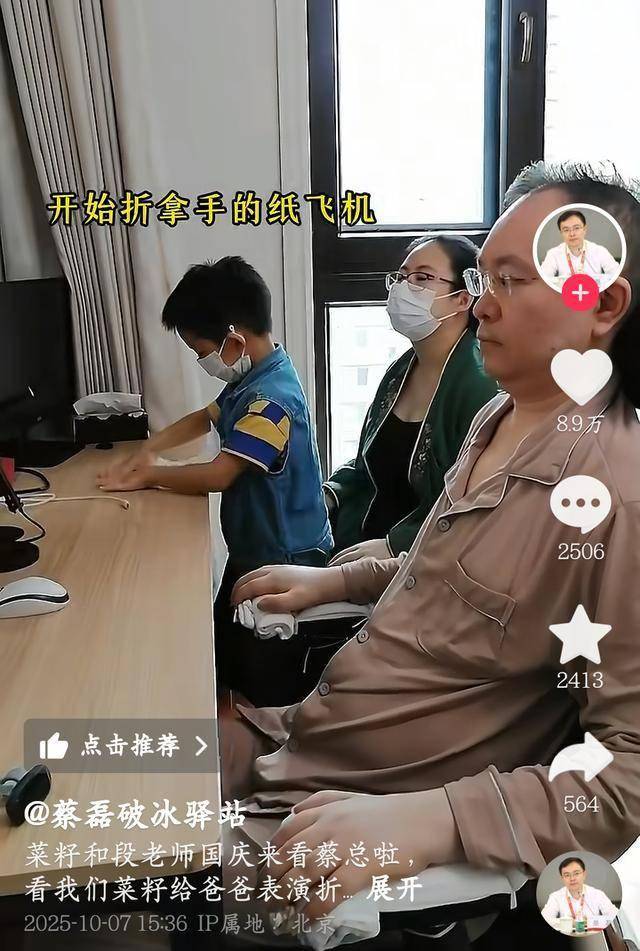 继下楼溜达的消息之后,蔡磊有更新了一条假期期间的视频,段睿带着儿子小菜籽来看望了。