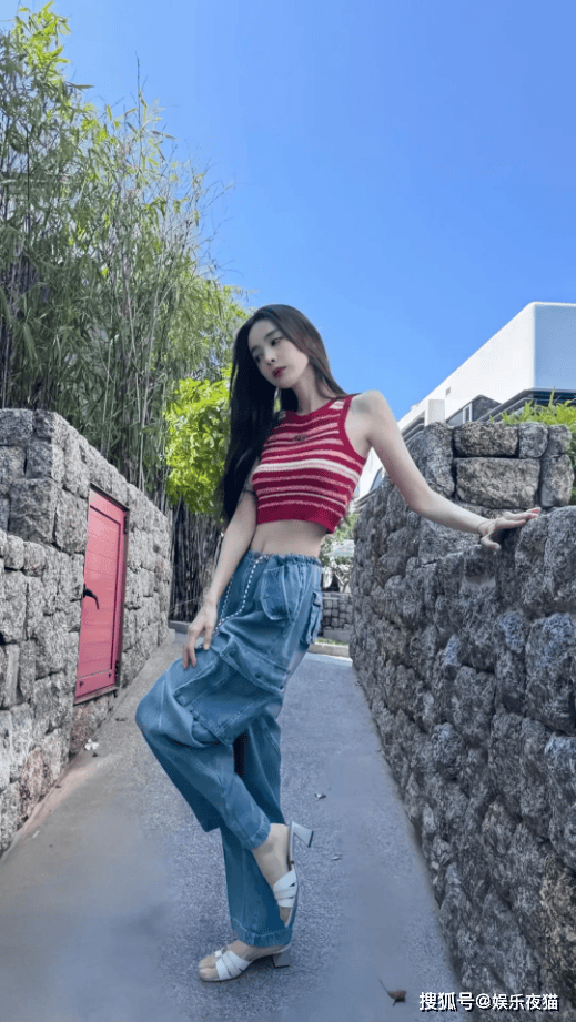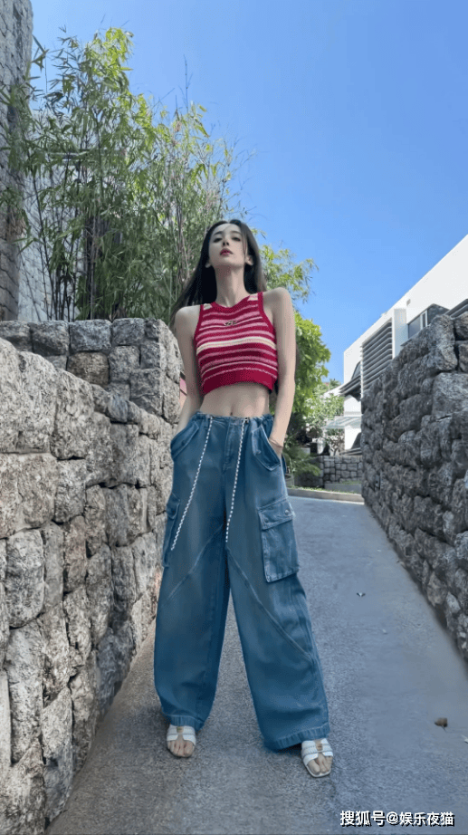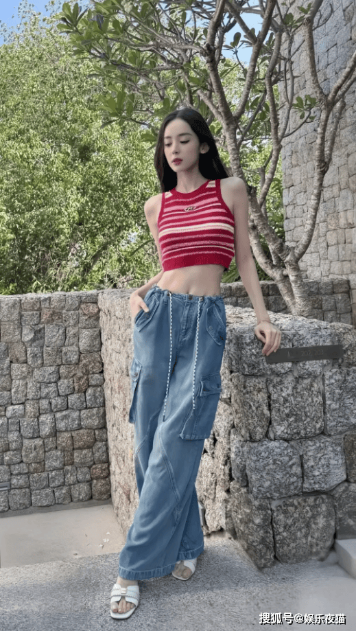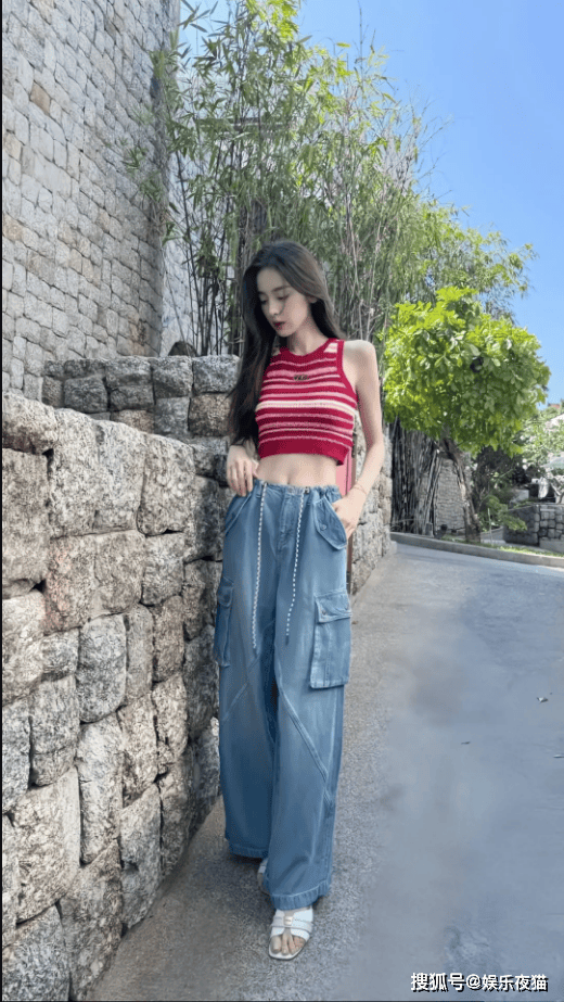 古力娜扎这套穿搭太有范儿了!红白色条纹针织背心露出纤细腰肢,甜辣又吸睛;做旧蓝工装牛仔阔腿裤自带复古腔调,大口袋设计潮酷感拉满,再搭配简约白色凉鞋,在石墙绿植的映衬下,随性又时髦,把甜酷风拿捏得恰到好处,是夏日出街的绝佳穿搭模板~