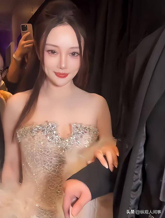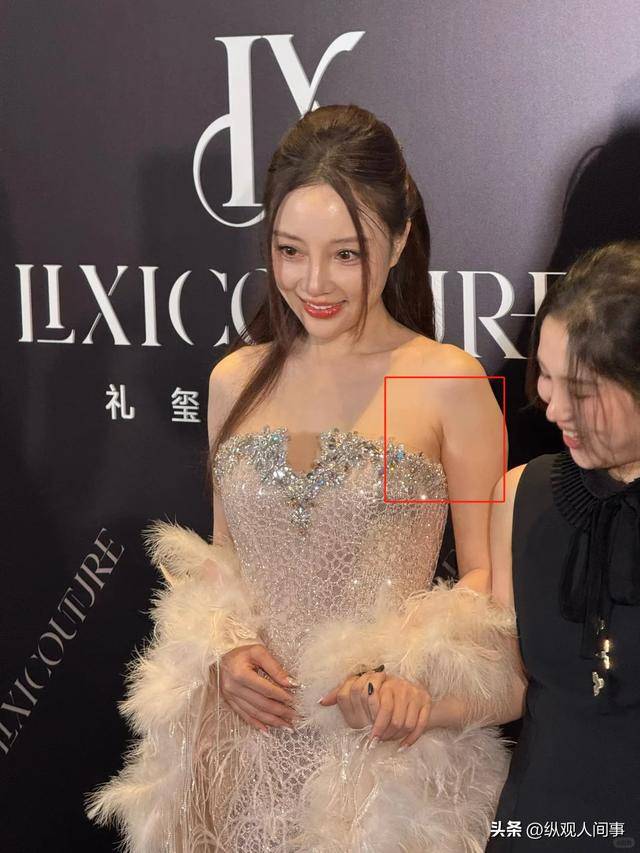 银色裹胸亮片礼裙,裙子上面全是亮钻,看着好看,可是在李小璐身上却显得特别黑。