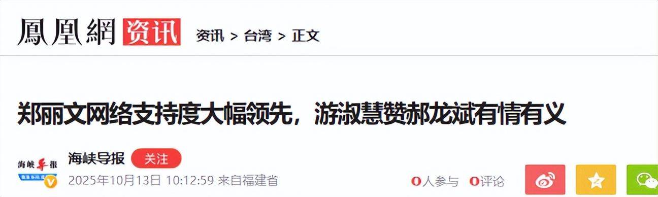 紧接着,他在社交媒体上发文,用一个意味深长的女性代词“妳”,将矛头含沙射影地指向了民调一路领先的郑丽文。