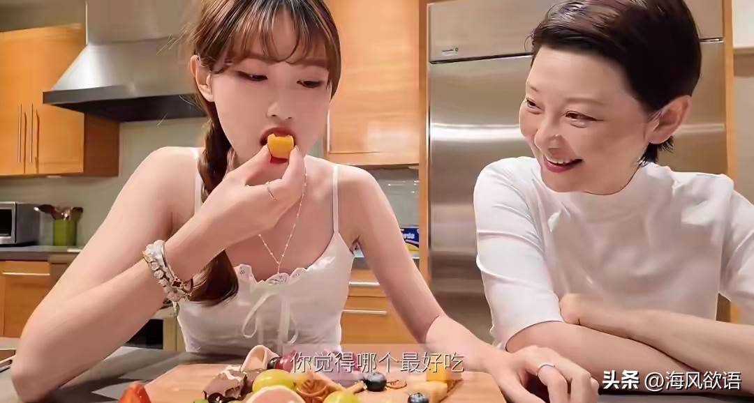 徐帆一看眼睛都亮了,吃了大半还不停夸赞,还手把手给女儿卷水果吃,眼神温柔得能滴出水。