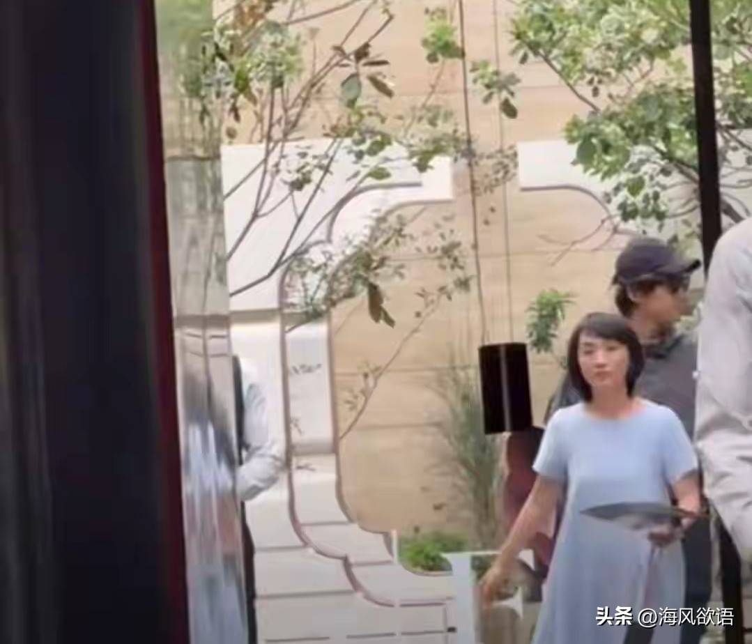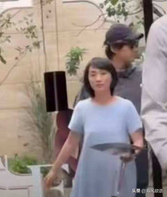 最让人关注的是她穿的那条灰蓝色连衣裙,版型宽松得很,把身材遮得严严实实,不少人第一眼就嘀咕:“这看着也太像孕妇了吧?”