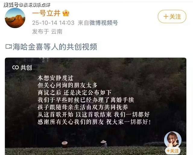 然而,2025年5月,海哈金喜发视频否认离婚传闻,称因工作分居但“感情稳定”,透露为还债搬至小户型租房,名下无房产。仅仅过了5个月,他们就突然官宣离婚,从否认到官宣的巨大转变,让人感到十分意外。这也让很多人对他们的婚姻状况产生了更多的猜测和疑问。