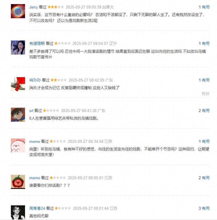 在豆瓣短评区形成排山倒海的差评浪潮后,9月26日晚间播出的《向往的生活》第八季首期,终于让"无聊"二字有了具象化的演绎。湖南卫视与芒果TV同步上线的这档老牌综艺,正用行动证明:没有最乏味,只有更乏味。