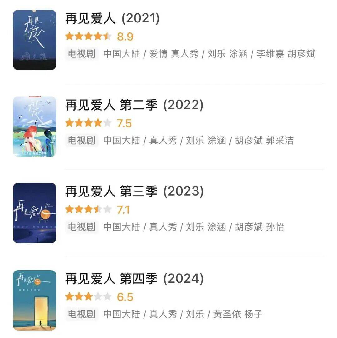 《再见爱人》评分逐年下滑。(图/豆瓣)
