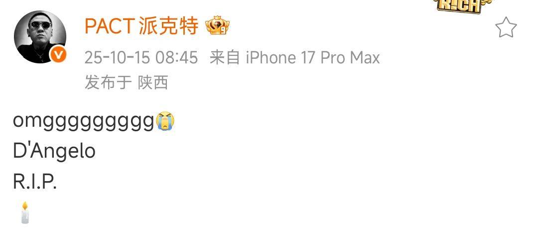 啊?!传奇音乐人D'Angelo于10月14日因胰腺癌去世,年仅51岁!!