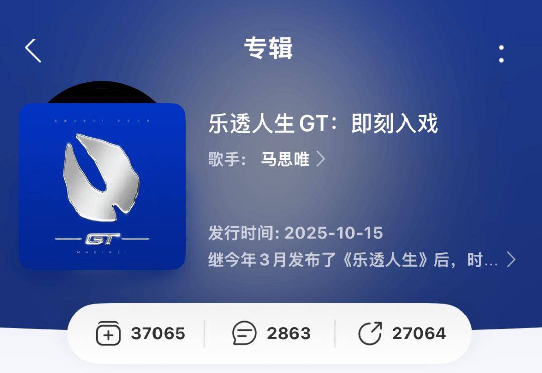 而马思唯的新专辑《乐透人生 GT》目前也有3万多收藏!!!
