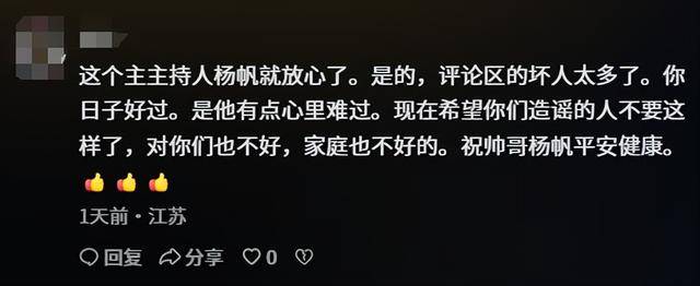 没过多久,网上就冒出好多个账号,开始传杨帆“突遭重病”的消息。