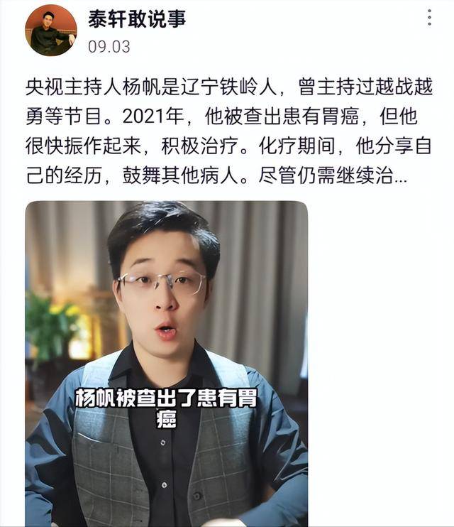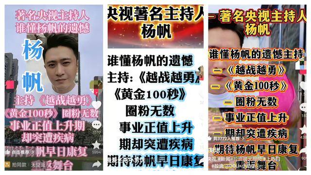最近央视主持人杨帆就遇上了这么一档事,好好的一个人,被传成了“患癌命不久矣”,还被配哀乐。