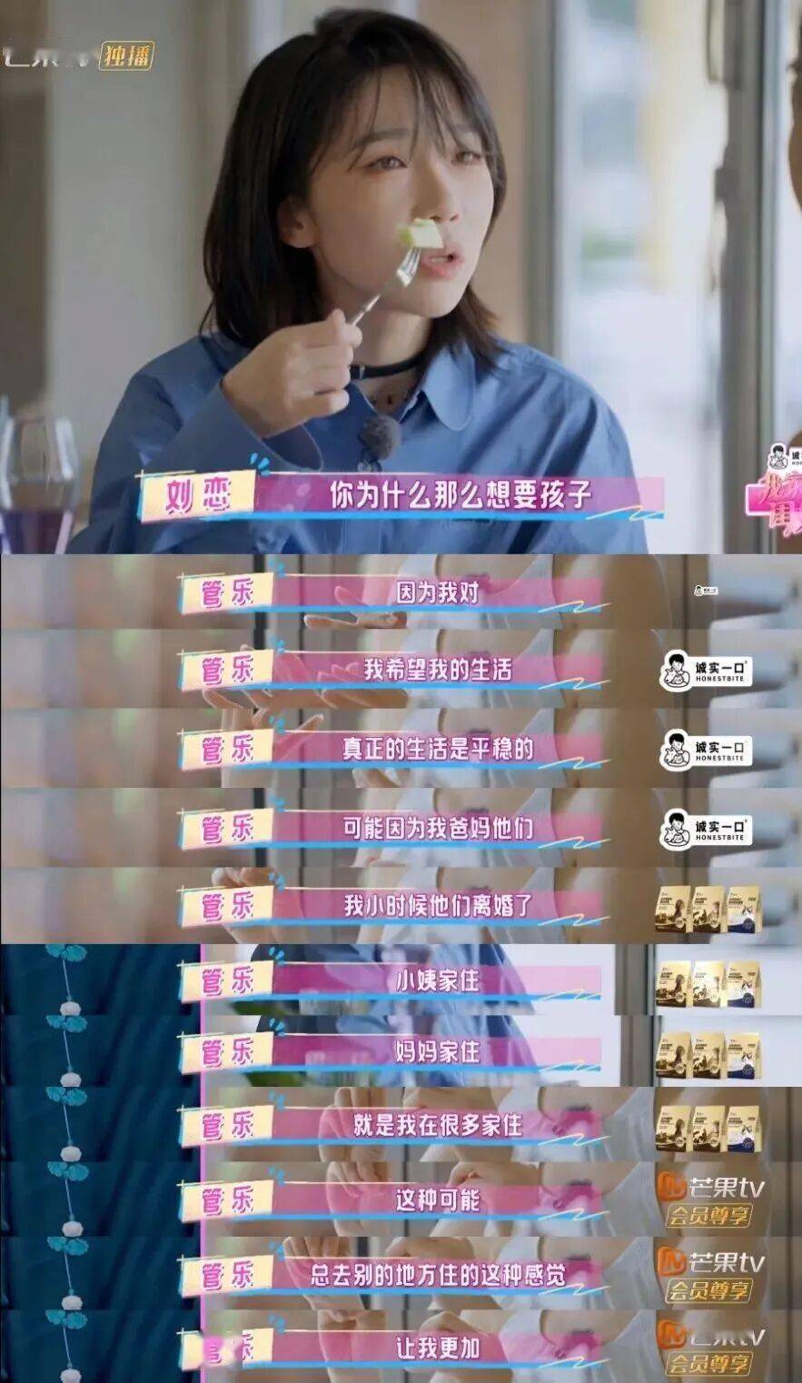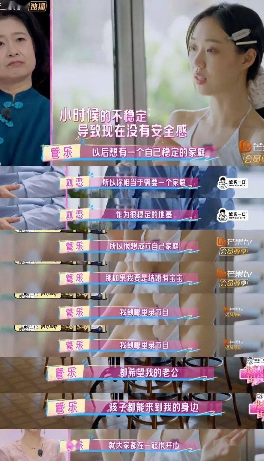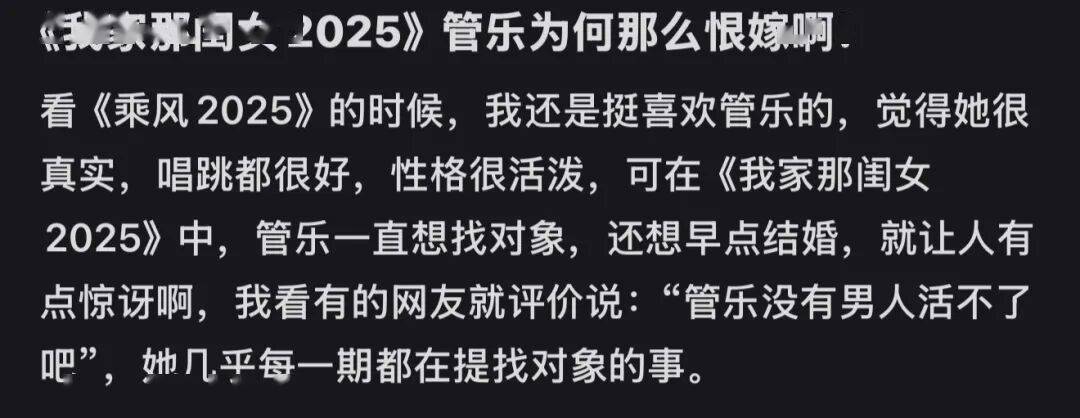 《我家那闺女》中,她被批判为“恋爱脑”的恨嫁言论,如果在了解了她的成长过程后,似乎不难理解她的表达: