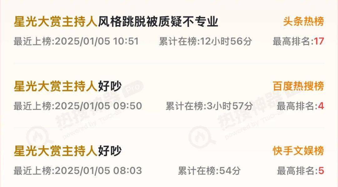 众多质疑声中,还包括今年年初的腾讯星光大赏,因为她跳脱的主持风格,被质疑不专业。