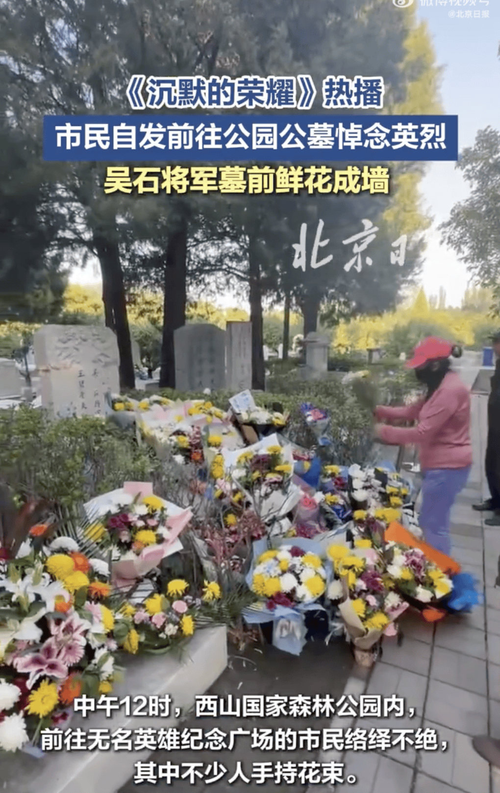 In Beijing, Silent Honorhas prompted many citizens to visit Wu Shi's grave at Futian Cemetery, bringing flowers and mooncakes in remembrance. Visitors have also flocked to Xishan National Forest Park to honor other heroes.