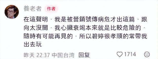 在回应评论区质疑时,他特意提到:那些“病危”的说法都是营销号传的,跟向太没关系。”