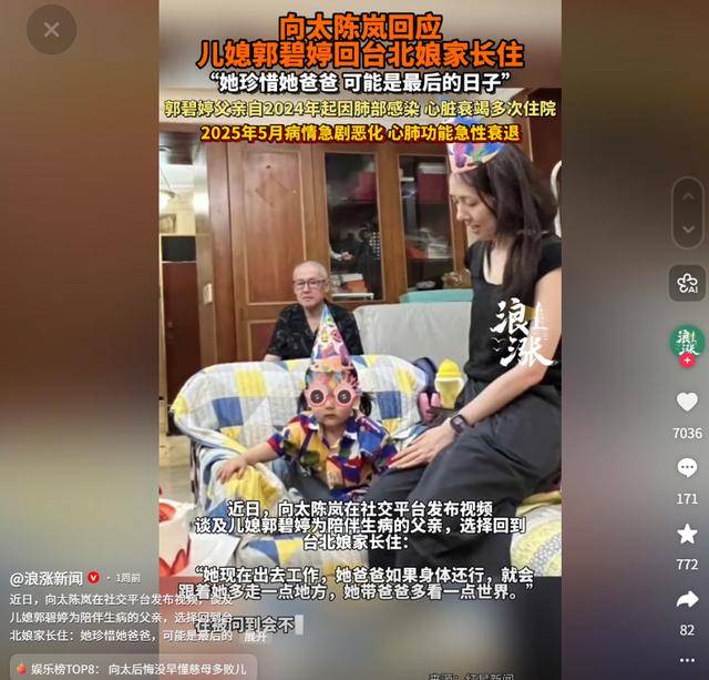 而向太当时的爆料,其实还有被忽略的细节:她在视频里重点提到 “碧婷很孝顺,知道爸爸身体不好,主动带着孩子回台湾陪他,工作也不忘带着老人”。