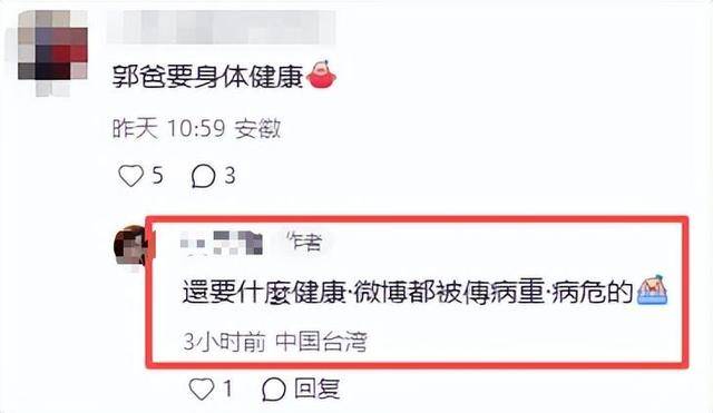 第一次回应很偶然:有网友在他的社交账号下留言 “郭爸爸要身体健康”,他没发长篇大论,反而带着点自嘲回复 “还要什么健康?都被传病重、病危了”,还配了个 “哭唧唧” 的表情包。