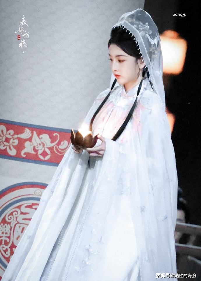 宋祖儿表妹万福最新路透,身着一袭白衣,头戴白色帽帷,薄纱覆面,精致的五官若隐若现。她手捧莲花灯,神情悲悯,尽显古典雅致之美!