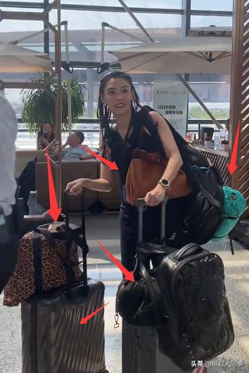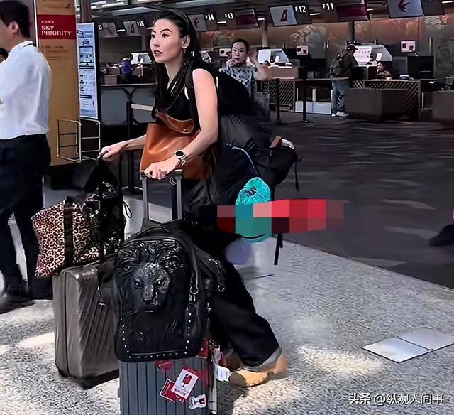 张柏芝这季算是把"精致"刻进DNA里了。机场路透里她拖着10包行李。