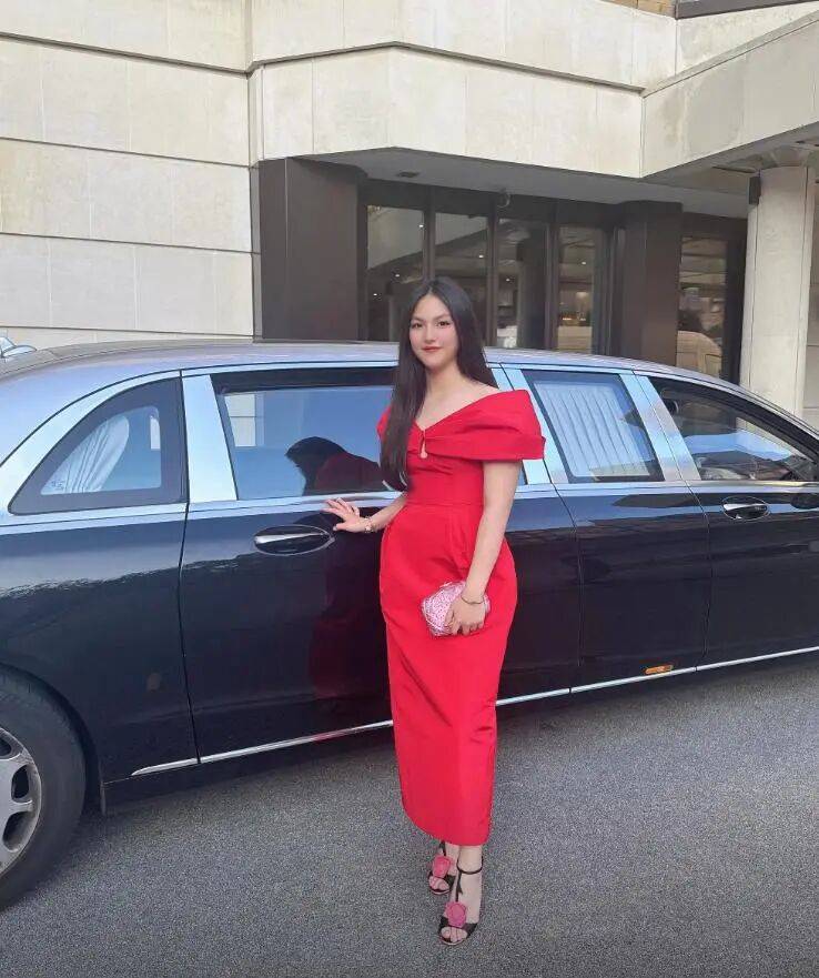 16岁的王诗龄留着乌黑的披肩长发,身着大红的露肩长裙,两腕戴着手镯,左手还拿着一个粉色的高档坤包,十足的名媛打扮,尽显高贵、典雅、惊艳。