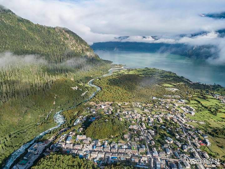 这是2023年7月20日拍摄的西藏林芝市工布江达县错高乡结巴村景色(无人机照片)。新华社记者 孙非 摄