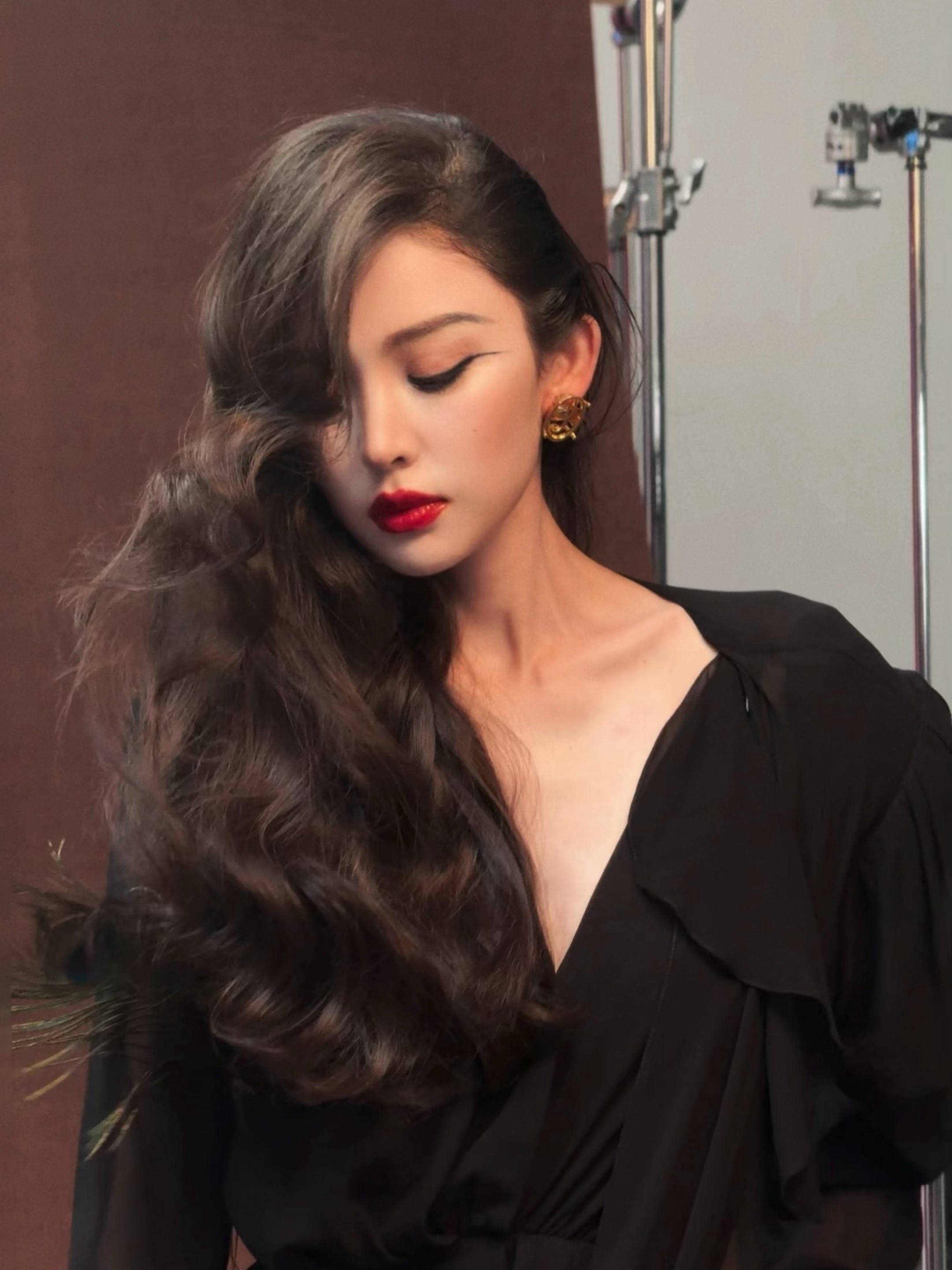 古力娜扎身披黑色羽毛翅膀,气场强大。