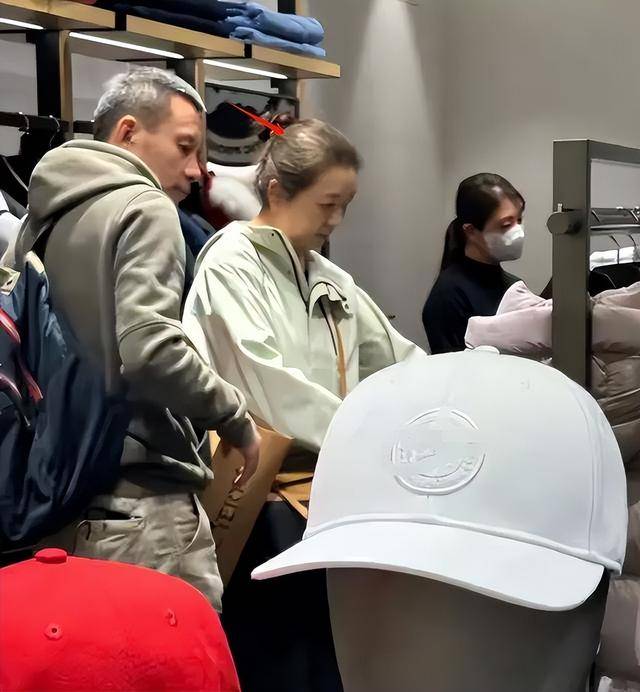 老公田小洁正耐心地陪伴着,两人时不时低声交谈,商场中两人还牵手行走,看起来两人很是甜蜜。