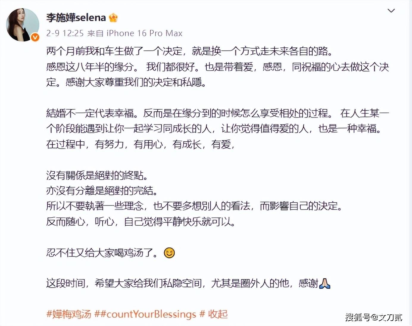 当时她的分手文案,很清楚地说明俩人是经过深思熟虑,才决定放弃这段感情。