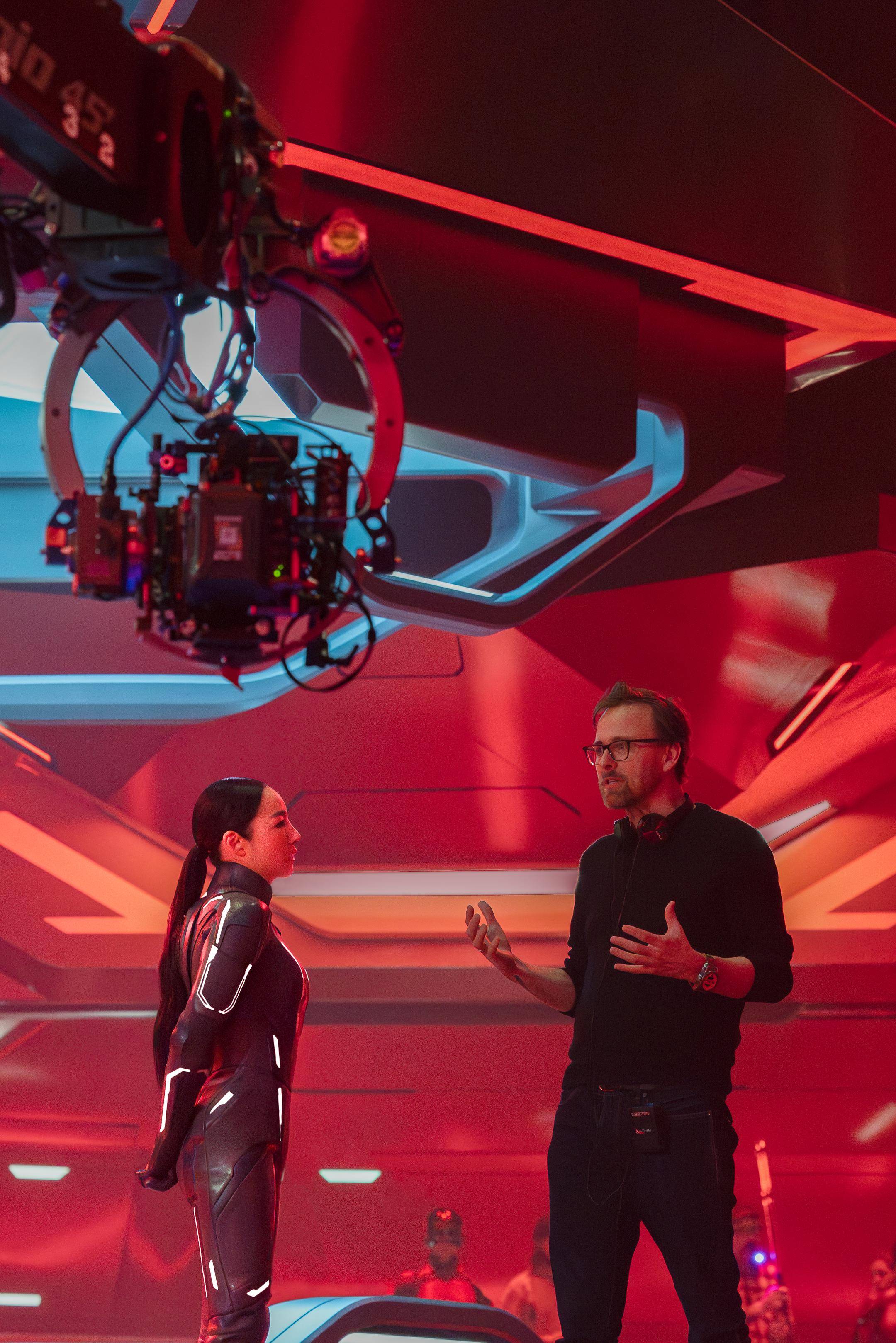 他透露,影片的视觉特效由工业光魔与维塔数码联合打造,剧组在温哥华搭建了大量实景,其中包括标志性的光轮场景。“我们有六周时间都在夜间封闭拍摄,只为让这部电影配得上‘Tron’的名字。”