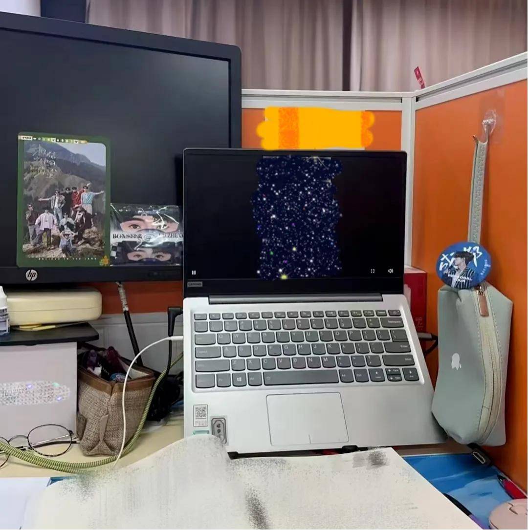(一君电脑旁的《种地吧》亚克力明信片成了她写论文时的“陪伴者”)