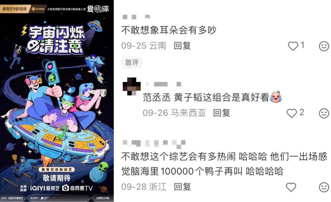 《宇宙闪烁请注意》无疑是快乐解压的代表。黄晓明、黄子韬、刘耀文、范丞丞、王鹤棣这些熟人组成的“生抽男团”,带着“高能量熟人局”的趣味设定踏上旅行探险之旅。网友在评论区兴奋地表示:“这个综艺的配置我太期待了!显眼包占俩!一个白磷,还是老爱豆!于洋综艺感拉满!”