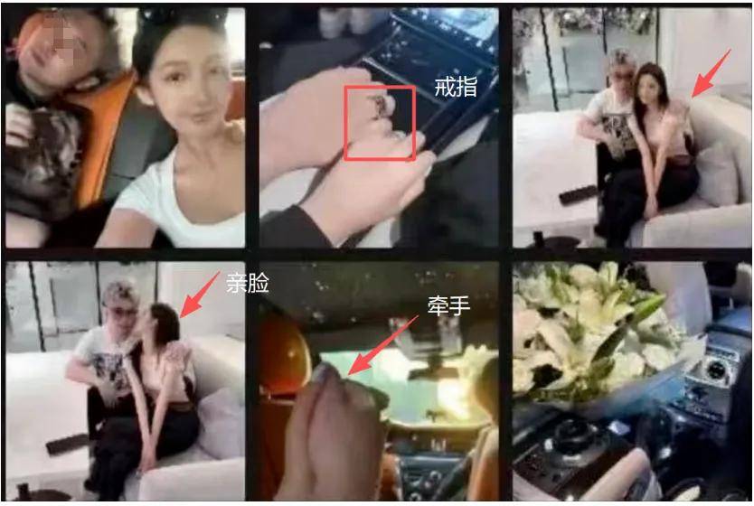六张配图,两张露脸同框,一张牵手照、一张戒指照、一张亲脸照,剩下一张看不出来人物的配图,同样有深意。