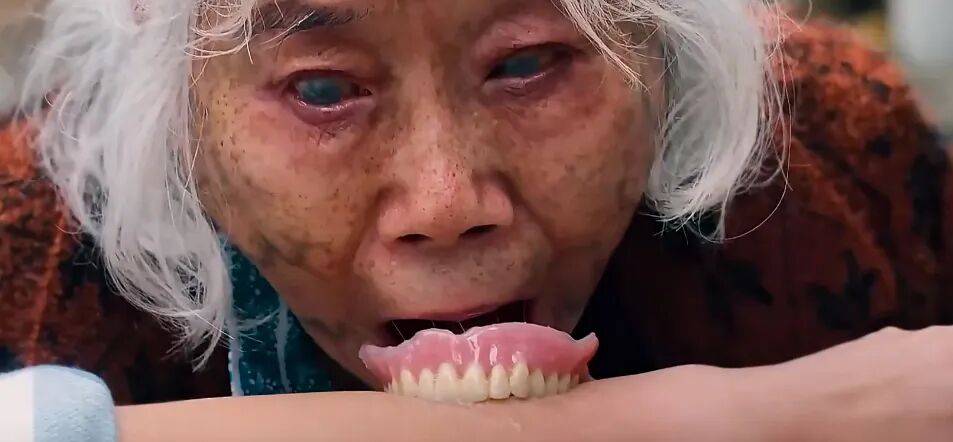 他吓得魂都没了,结果老太太的假牙粘她胳膊上了。