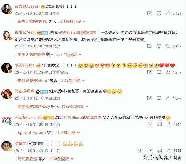 而内娱的明星好友估计也是刚刚得知消息,像是曾舜晞还有惠英红都纷纷在评论区中祝福。