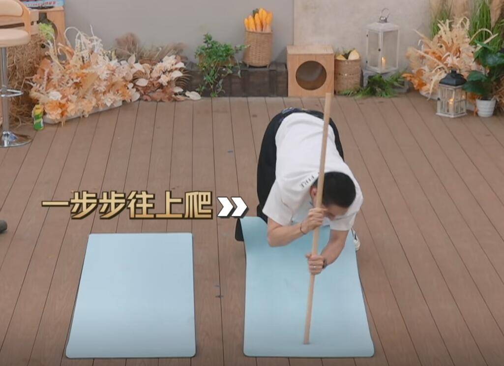 有一个游戏需要用木棍把身体撑起来,这是一个非常考验核心的项目。
