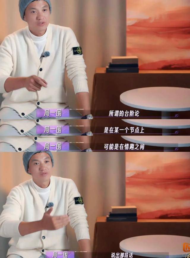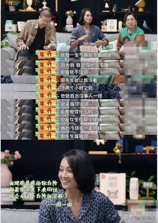 她在节目里说,有一次两人闹冷战,周一围对她说:“我现在是在给你台阶下,如果你现在不下,待会儿就没了。”