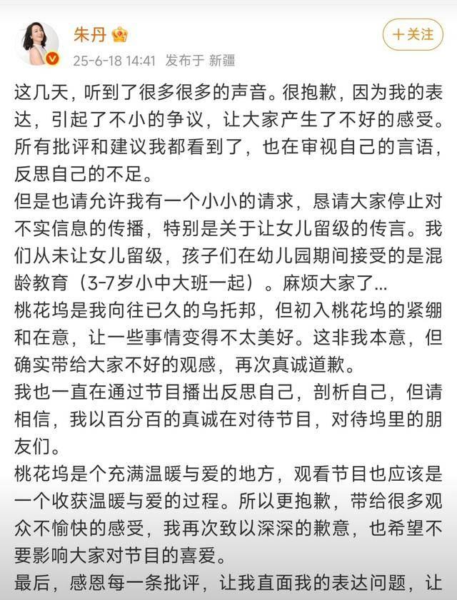 朱丹一看情况不对,赶紧发文回应,解释两个孩子在的是混龄班,根本不存在留级的说法。