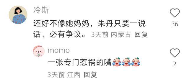 有网友调侃说:“幸好这孩子说话不像妈妈,逻辑清晰又大方,不然再跟妈妈一样‘嘴笨’,朱丹可就真百口莫辩了。”