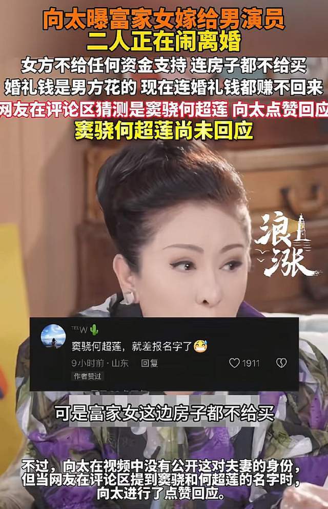一则看似不经意的“忠告”,掀起了娱乐圈与豪门圈的双重震荡。10月18日,向太在视频中谈及“女生不要下嫁”的话题时,透露某富家女与男演员的婚姻正陷入危机,婚礼费用由男方独力承担,女方家庭却未给予经济支持,房产皆登记在女方名下,疑因母亲不看好女婿。尽管未点名,但当网友留言猜测窦骁与何超莲时,向太的点赞行为瞬间将这对夫妇推至舆论风口。