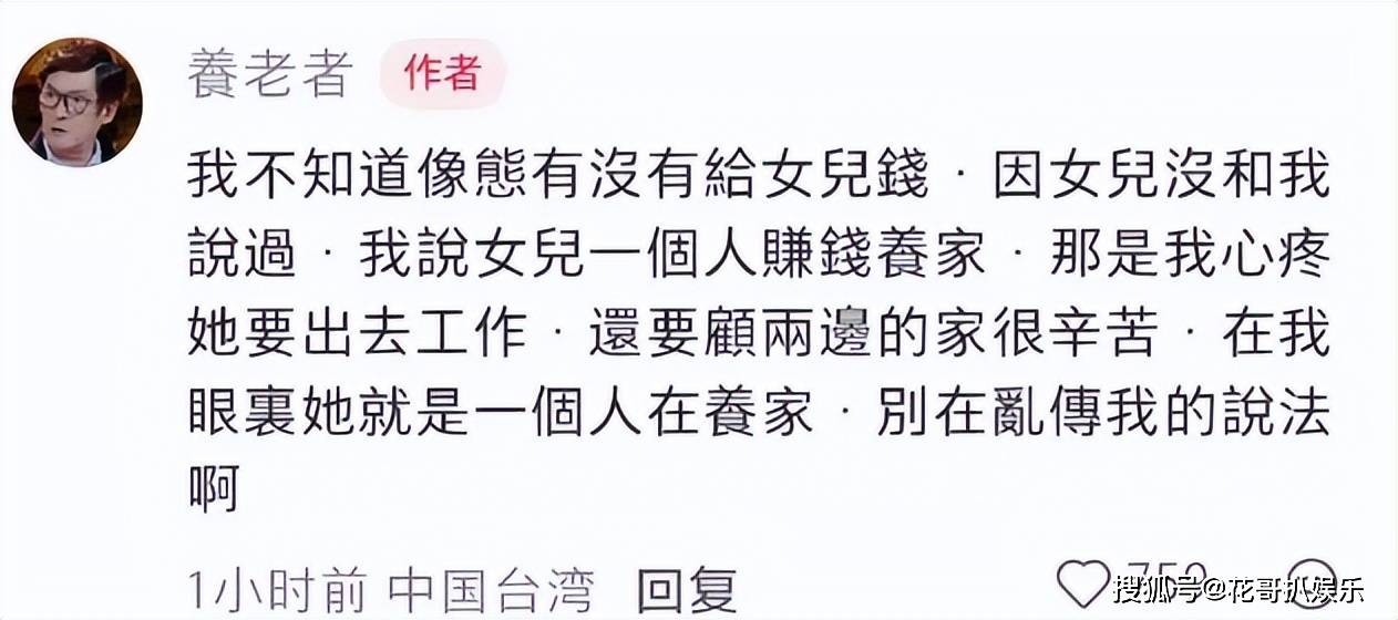 很快郭碧婷爸爸就做出解释,说自己之所以这么说没别的意思,只是单方面心疼女儿,让大家不要胡乱猜测,女儿也没和他说过向太不给钱的事。