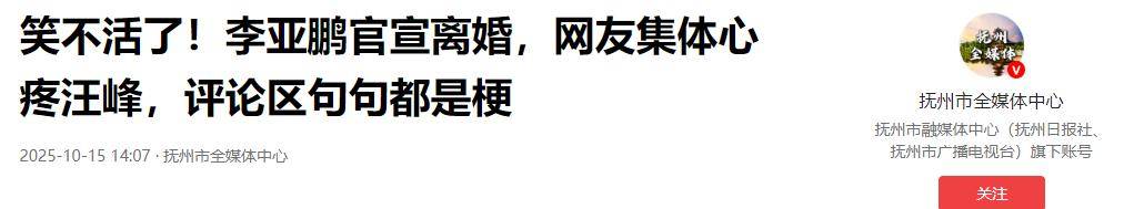 原创 会玩!李亚鹏官宣离婚,评论区全是梗,汪峰躺着也中枪:一丘之貉