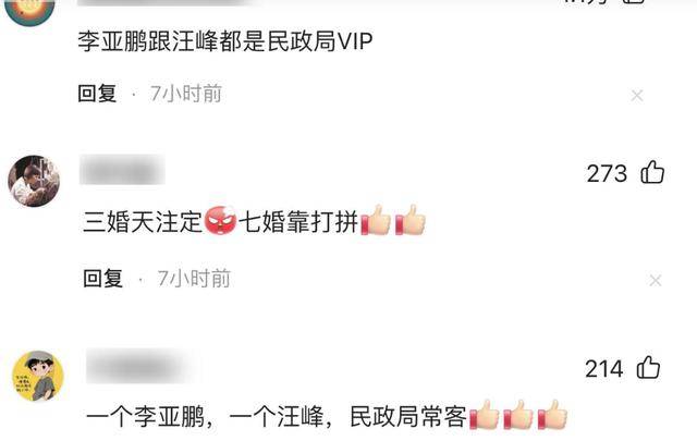 但调侃贵归调侃,也有网友“急眼”的,称汪峰和李亚鹏就是民政局的VIP客户,天天正事不干,净想着怎么离婚、结婚了,甚至还有过分的称两人就是一丘之貉。