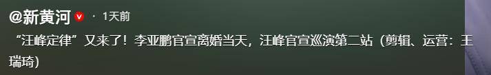 这个屡试不爽的巧合,被网友们戏称为“汪峰定律”,这次也不例外,10月14日中午汪峰团队刚宣布演唱会的消息,不到两个小时,李亚鹏离婚的视频就全网推送,定律再次应验。
