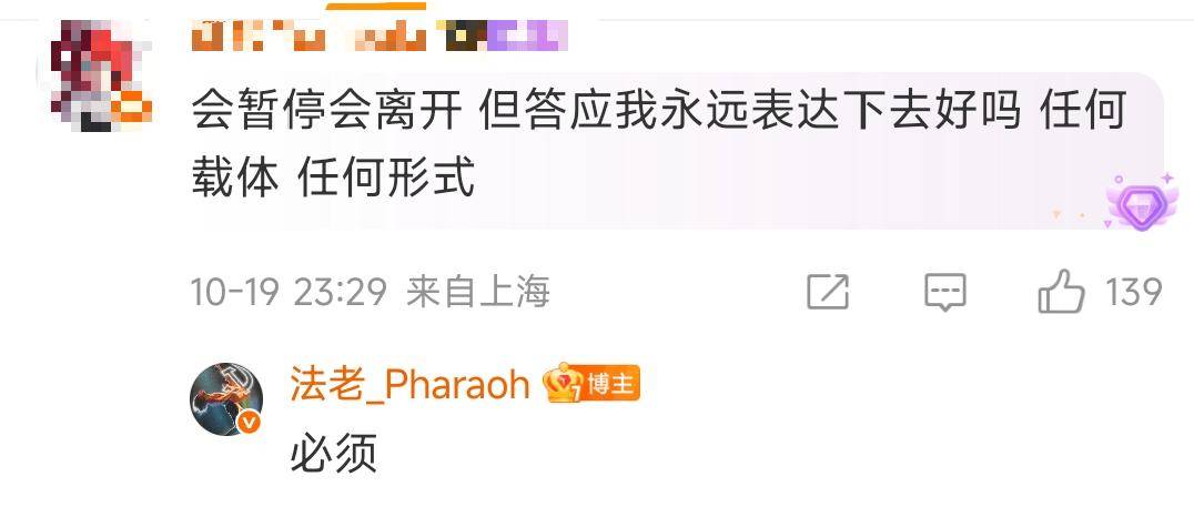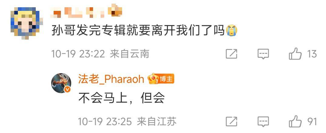 对此,也有人好奇询问法老,是不是发完专辑真的就要离开粉丝。