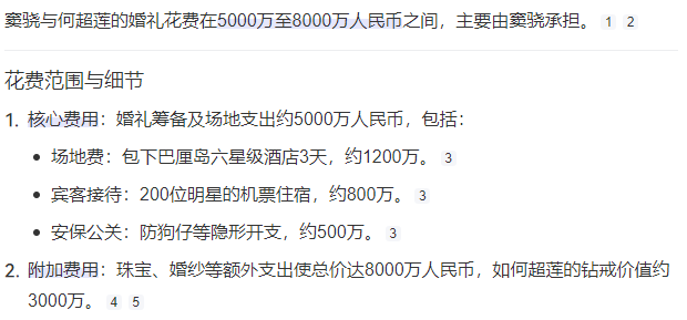 其中包括场地费、宾客机酒费,外加婚纱和珠宝等等等费用,纵观整个内娱都不是小数目。